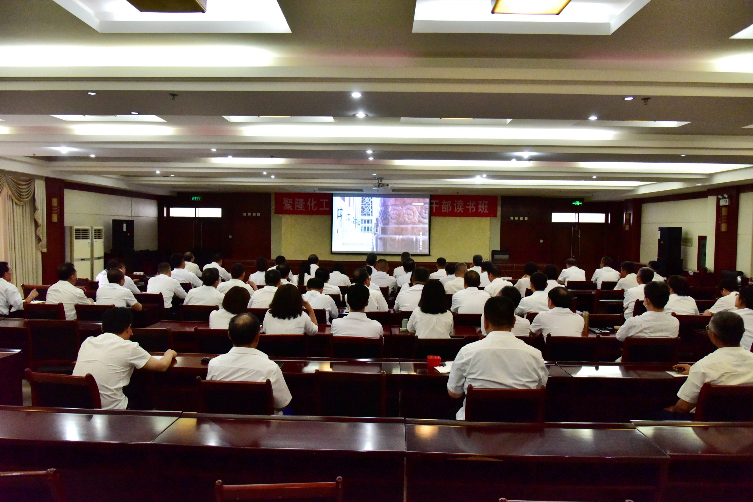 聚隆化工領導班子、各廠部黨政正職及關鍵崗位負責人60余人參加讀書班活動。(文/劉建業(yè)? 圖/龔海林)